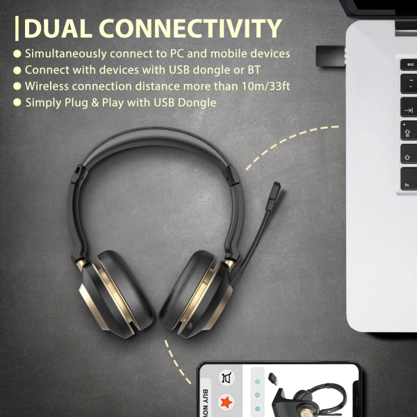 Bluetooth Headset with ENC Microphone and Charging base for Computer, PC, Laptop, Skype, TV , Mobile phone